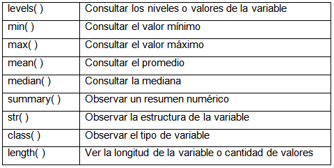 Puede continuar ejecutando cada una de estas funciones siguiendo la estructura funcion(nombre.del.dataframe).